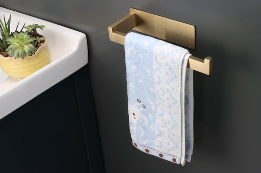 Hand Towel Holder, Strong Self Adhesive Hand Towel Ring, Thicken SUS304 Stainless Steel Hand Towel Bar/Rack, No Drilling Modern Hand Towel Hanger (Brushed Gold, 9 in)