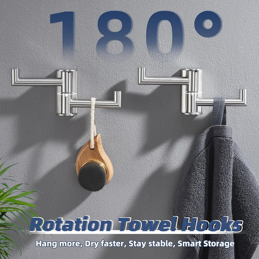 APLusee Swivel Towel Hook Polished Chrome 2 Pack, 304 Stainless Steel Bathroom Robe Hook Towel Holder, Folding Wall Hook Wall Mounted