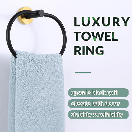 APLusee Black Gold Hand Towel Ring, Stainless Steel Hand Towel Holder for Bathroom Wall Mounted