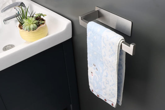 Hand Towel Holder, Strong Self Adhesive Hand Towel Ring, Thicken SUS304 Stainless Steel Hand Towel Bar/Rack, No Drilling Modern Hand Towel Hanger (Brushed Nickel, 9 in)