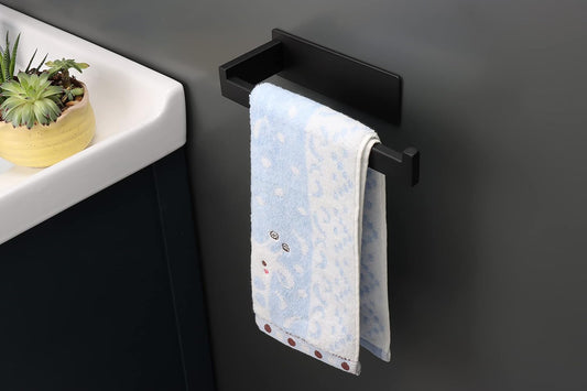 Hand Towel Holder, Strong Self Adhesive Hand Towel Ring, Thicken SUS304 Stainless Steel Hand Towel Bar/Rack, No Drilling Modern Hand Towel Hanger (Matte Black, 9 in)