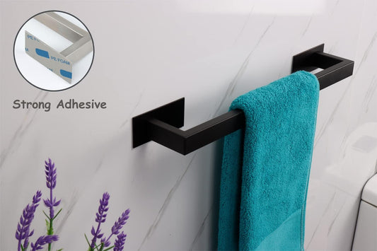 Bathroom Towel Bar Self Adhesive, No Drilling Towel Rack Easy to Install, Hand Towel Holder Made of Premium Stainless Steel Sticky on Hand Towel Hanger for Kitchen, Toilet.(17.7IN, Black)