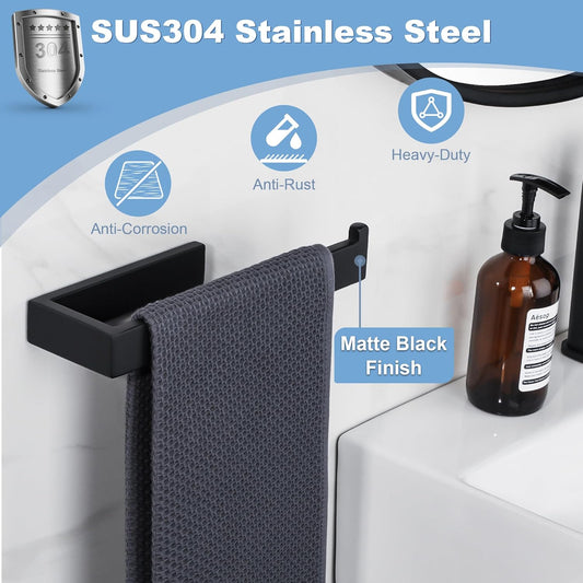 Matte Black Towel Ring,Square Hand Towel Holder,Towel Hanger, Bathroom Hardware Accessories,SUS 304 Stainless Steel Wall-Mounted