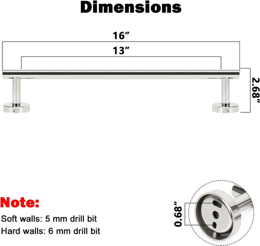NearMoon Bath Towel Bar, Bath Accessories Thicken Stainless Steel Shower Towel Rack for Bathroom, Towel Holder Wall Mounted (1 Pack, Chrome Finish, 16 Inch)