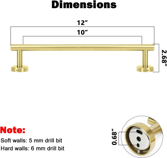 NearMoon Bath Towel Bar, Bath Accessories Thicken Stainless Steel Shower Towel Rack for Bathroom, Towel Holder Wall Mounted (1 Pack, Brushed Gold, 12 Inch)