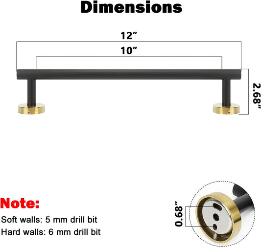NearMoon Bath Towel Bar, Bath Accessories Thicken Stainless Steel Shower Towel Rack for Bathroom, Towel Holder Wall Mounted (1 Pack, Matte Black & Gold, 12 Inch)
