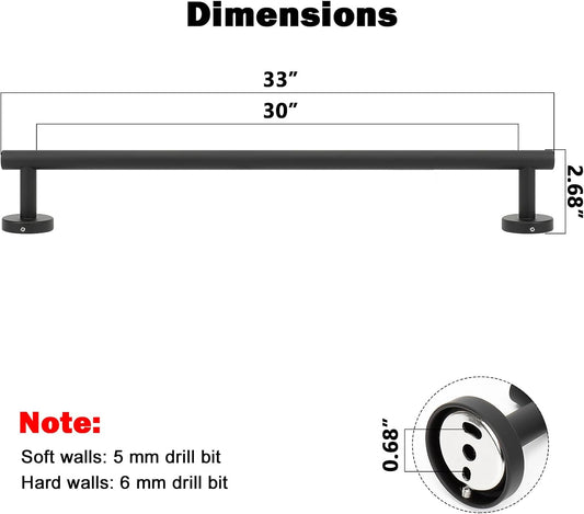 NearMoon Bath Towel Bar, Bath Accessories Thicken Stainless Steel Shower Towel Rack for Bathroom, Towel Holder Wall Mounted (1 Pack, Matte Black, 33 Inch)