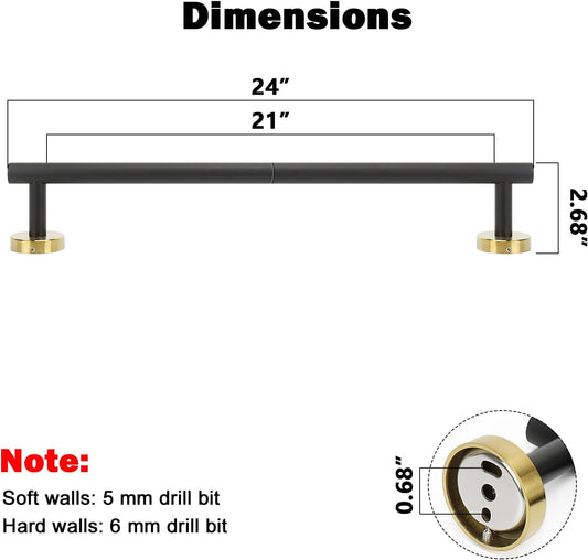 NearMoon Bath Towel Bar, Bath Accessories Thicken Stainless Steel Shower Towel Rack for Bathroom, Towel Holder Wall Mounted (1 Pack, Matte Black & Gold, 24 Inch)