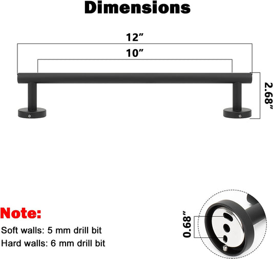 NearMoon Bath Towel Bar, Bath Accessories Thicken Stainless Steel Shower Towel Rack for Bathroom, Towel Holder Wall Mounted (1 Pack, Matte Black, 12 Inch)