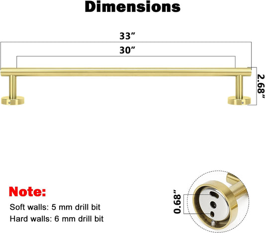 NearMoon Bath Towel Bar, Bath Accessories Thicken Stainless Steel Shower Towel Rack for Bathroom, Towel Holder Wall Mounted (1 Pack, Brushed Gold, 33 Inch)