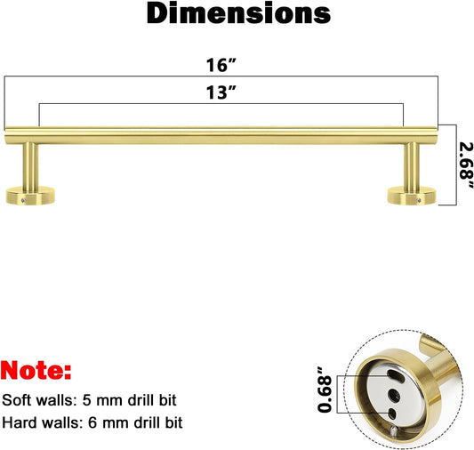 NearMoon Bath Towel Bar, Bath Accessories Thicken Stainless Steel Shower Towel Rack for Bathroom, Towel Holder Wall Mounted (1 Pack, Brushed Gold, 16 Inch)