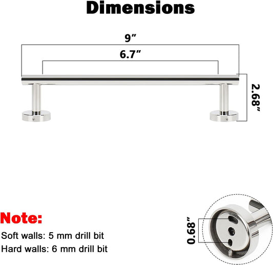 NearMoon Bath Towel Bar, Bath Accessories Thicken Stainless Steel Shower Towel Rack for Bathroom, Towel Holder Wall Mounted (1 Pack, Chrome Finish, 9 Inch)