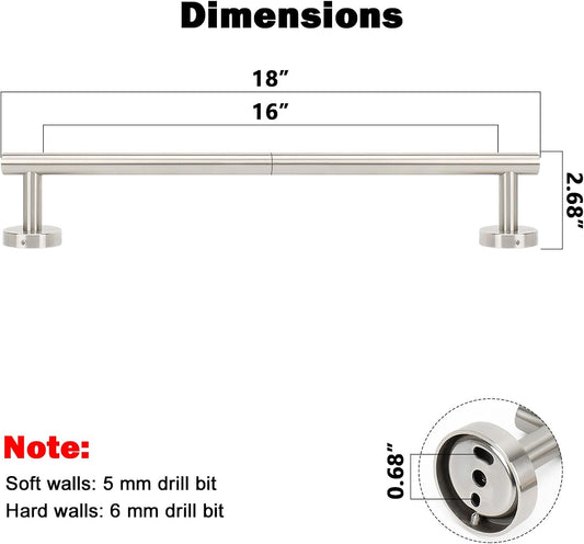 NearMoon Bathroom Towel Bar, Bath Accessories Thicken Stainless Steel Shower Towel Rack for Bathroom, Towel Holder Wall Mounted (1 Pack, Brushed Nickel, 18 Inch)