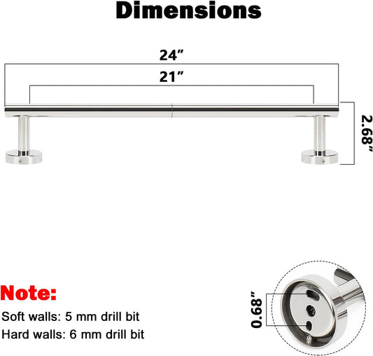 NearMoon Bathroom Towel Bar, Bath Accessories Thicken Stainless Steel Shower Towel Rack for Bathroom, Towel Holder Wall Mounted (1 Pack, Chrome Finish, 24 Inch)