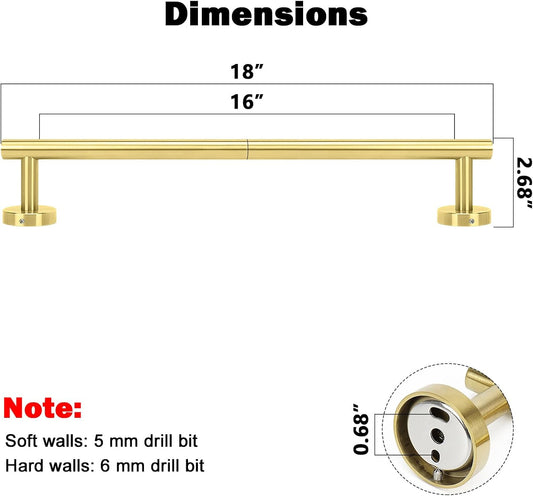 NearMoon Bath Towel Bar, Bath Accessories Thicken Stainless Steel Shower Towel Rack for Bathroom, Towel Holder Wall Mounted (1 Pack, Brushed Gold, 18 Inch)