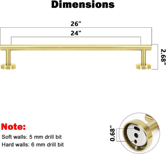 NearMoon Bath Towel Bar, Bath Accessories Thicken Stainless Steel Shower Towel Rack for Bathroom, Towel Holder Wall Mounted (1 Pack, Brushed Gold, 26 Inch)