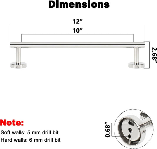 NearMoon Bath Towel Bar, Bath Accessories Thicken Stainless Steel Shower Towel Rack for Bathroom, Towel Holder Wall Mounted (1 Pack, Chrome Finish, 12 Inch)
