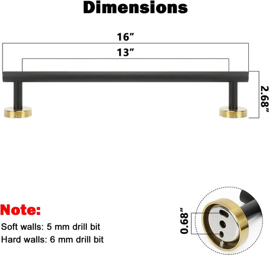 NearMoon Bath Towel Bar, Bath Accessories Thicken Stainless Steel Shower Towel Rack for Bathroom, Towel Holder Wall Mounted (1 Pack, Matte Black & Gold, 16 Inch)