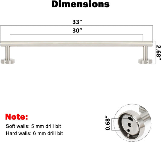 NearMoon Bath Towel Bar, Bath Accessories Thicken Stainless Steel Shower Towel Rack for Bathroom, Towel Holder Wall Mounted (1 Pack, Brushed Nickel, 33 Inch)