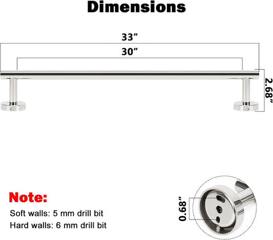 NearMoon Bath Towel Bar, Bath Accessories Thicken Stainless Steel Shower Towel Rack for Bathroom, Towel Holder Wall Mounted (1 Pack, Chrome Finish, 33 Inch)