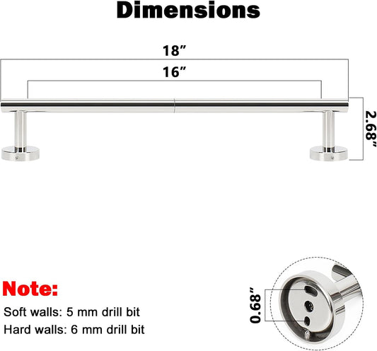 NearMoon Bath Towel Bar, Bath Accessories Thicken Stainless Steel Shower Towel Rack for Bathroom, Towel Holder Wall Mounted (1 Pack, Chrome Finish, 18 Inch)