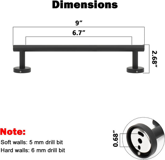 NearMoon Bathroom Towel Bar, Bath Accessories Thicken Stainless Steel Shower Towel Rack for Bathroom, Towel Holder Wall Mounted (1 Pack, Matte Black, 9 Inch)