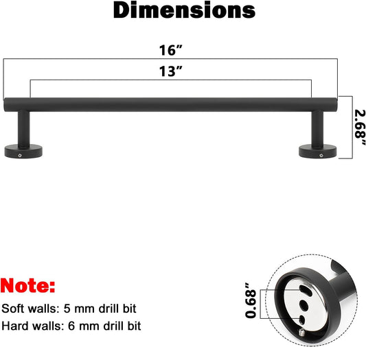 NearMoon Bath Towel Bar, Bath Accessories Thicken Stainless Steel Shower Towel Rack for Bathroom, Towel Holder Wall Mounted (2 Pack, Matte Black, 16 Inch)