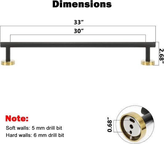 NearMoon Bath Towel Bar, Bath Accessories Thicken Stainless Steel Shower Towel Rack for Bathroom, Towel Holder Wall Mounted (1 Pack, Matte Black & Gold, 33 Inch)