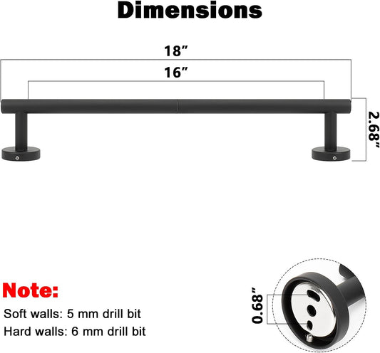 NearMoon Bath Towel Bar, Bath Accessories Thicken Stainless Steel Shower Towel Rack for Bathroom, Towel Holder Wall Mounted (2 Pack, Matte Black, 18 Inch)