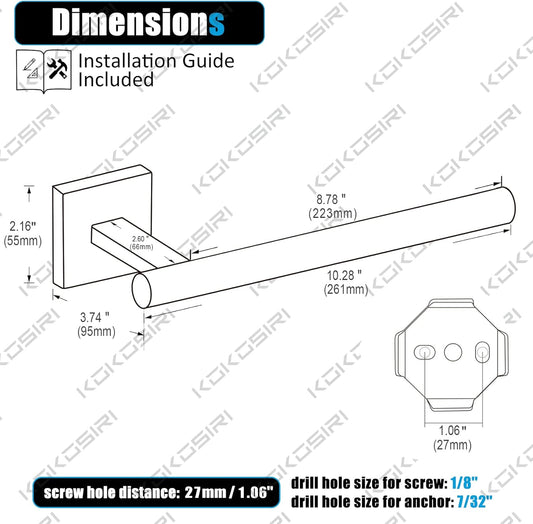 KOKOSIRI Bathroom Hand Towel Holder Brushed Nickel Bathroom Hardware, Suitable for Wall Mounted Towel Bar Screw in Stainless Steel, B3008BR