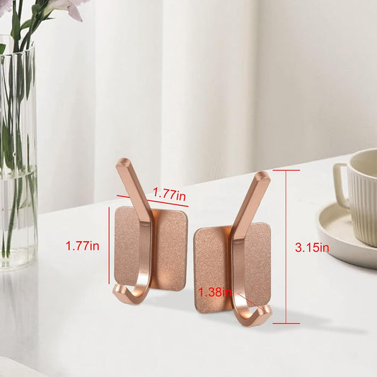 Aluminum Wall Hooks, No Drill Damage-Free Adhesive Hook, Product for Hanging Heavy Duty for Bathroom Kitchen Home (Double Square Rose Gold Hook, 4)