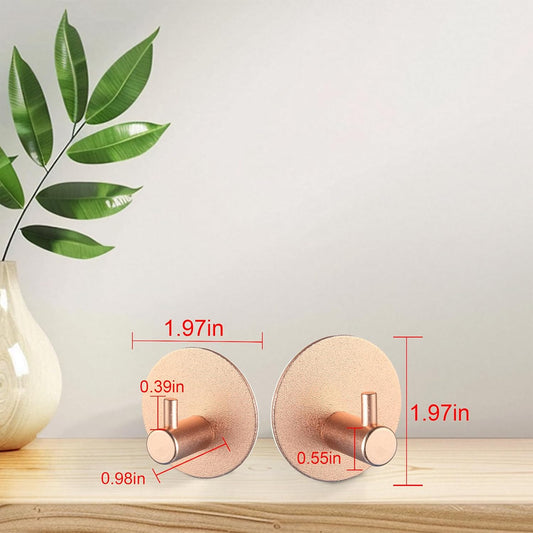 Aluminum Wall Hooks, No Drill Damage-Free Adhesive Hook, Product for Hanging Heavy Duty for Bathroom Kitchen Home (Single Round Rose Gold Hook, 4)