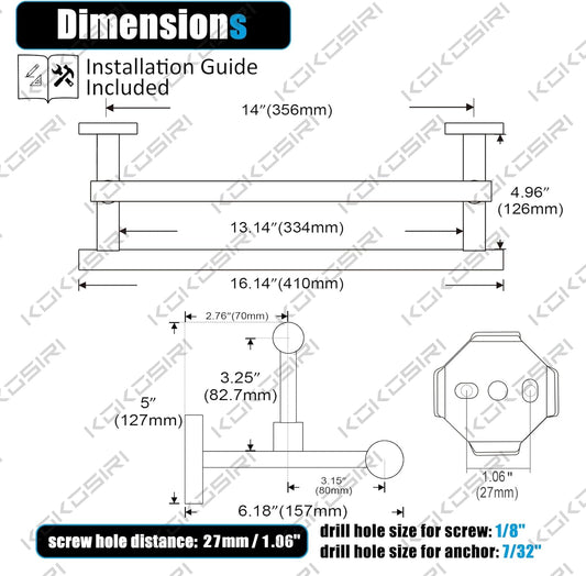KOKOSIRI Towel Holder Polished Chrome 36 Inch Bathroom Double Bath Towel Bars Kitchen Rack Wall Mounted Stainless Steel B5009CH-L36