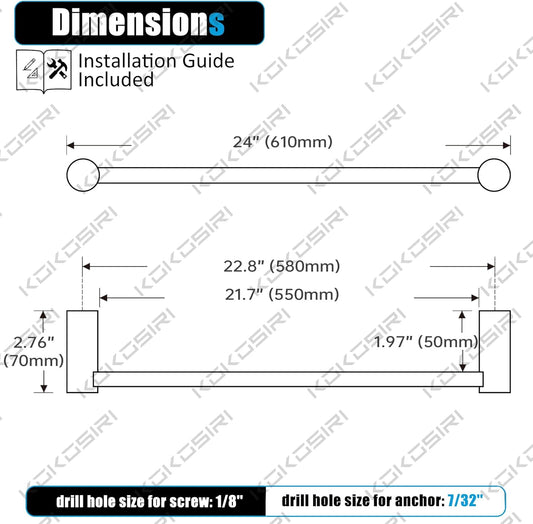 KOKOSIRI Towel Bars 24-Inch Bathroom Towel Holder Oil Rubbed Bronze Bath Towel Rails Racks Wall Mounted Stainless Steel B5009ORB-L24