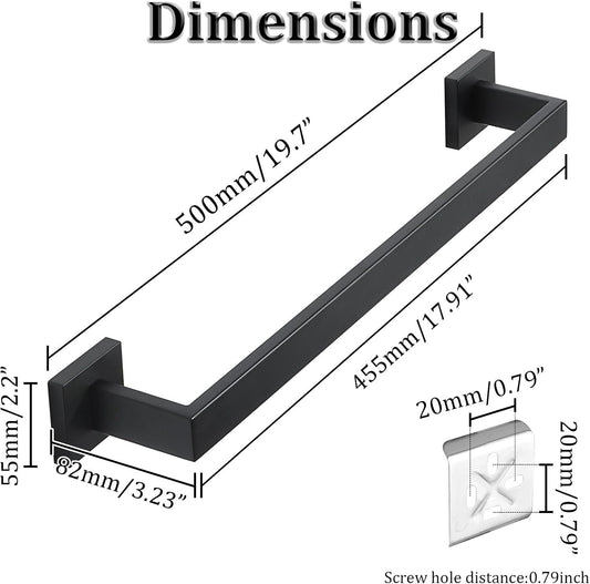 Alise Black Towel Bars,19.7 Inch Towel Holder Towel Racks for Bathroom and Lavatory,SUS304 Stainless Steel Hand Towel Hanger Rail Wall Mount,Useable Length 17.91 Inch Towel Bar, GYT050-B