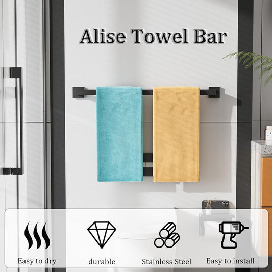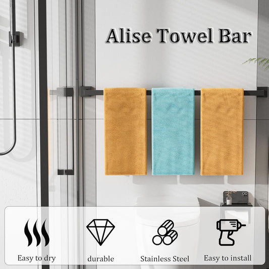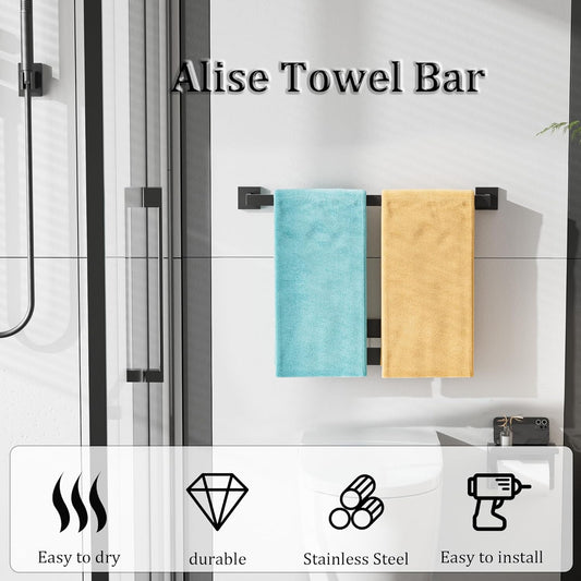 Alise Black Towel Bars,23.62 Inch Towel Holder Towel Racks for Bathroom and Lavatory,SUS304 Stainless Steel Hand Towel Hanger Rail Wall Mount,Useable Length 21.85 Inch Towel Bar, GYT060-B