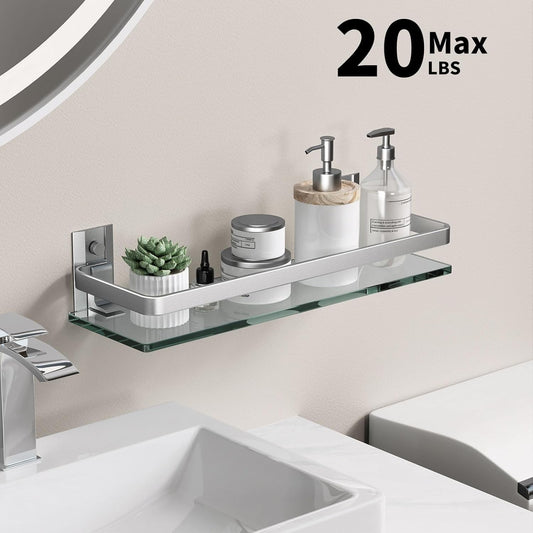 Danpoo Clear Tempered Glass Wall Shelf, Wall-Mounted Organizer for Bathroom, Kitchen(Matte Silver)
