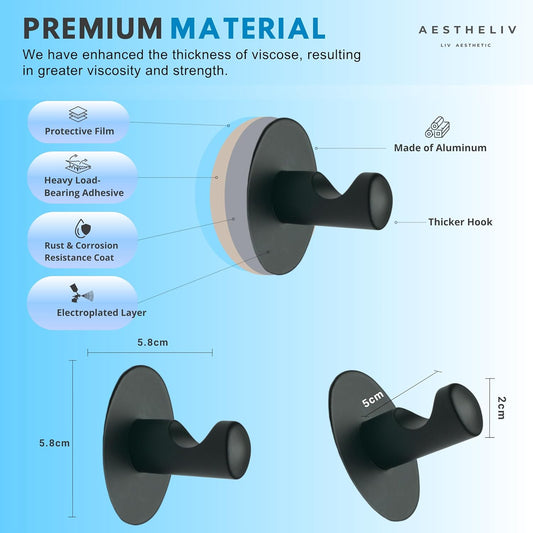Adhesive Hooks- 4 Pcs, Towel Hooks for Inside Shower, Heavy-Duty Adhesive Wall Hook, Rust-resitant Hooks for Hanging, Sticky Hook for Walls No Damage (Black)