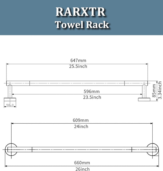 24 Inch Towel Bar Black Towel Rack for Bathroom Kitchen Towel Holder SUS304 Stainless Steel RUSTPROOF Wall Mount Total Length 26 inch (Matte Black)