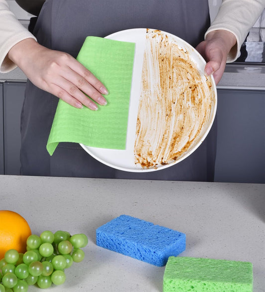 MEUUT 12 Packs Swedish Dishcloths and Kitchen Sponges for Cleaning, Reusable Absorbent Compressed Cellulose Cleaning Sponge Dish Clothes for Kitchen and Household Use