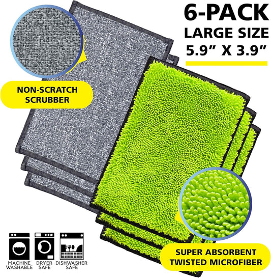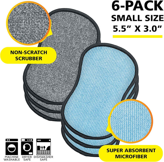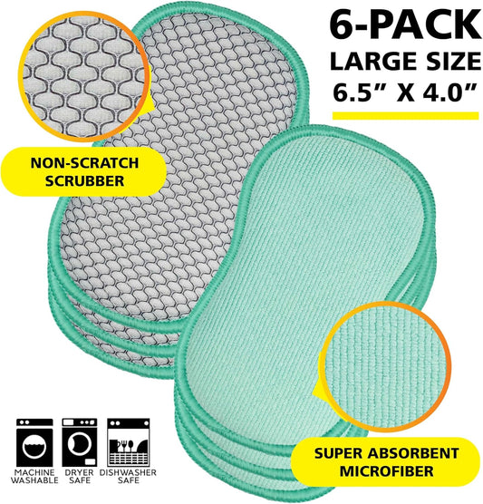 Upgrated Dual-Sided Sponges Kitchen, 6 Pack Microfiber Non Scratch Dish Scrub Sponge, All Purpose Dish Washing Scrubber for Cleaning Dishes, Kitchen, Pots, Pans, Sink & Household