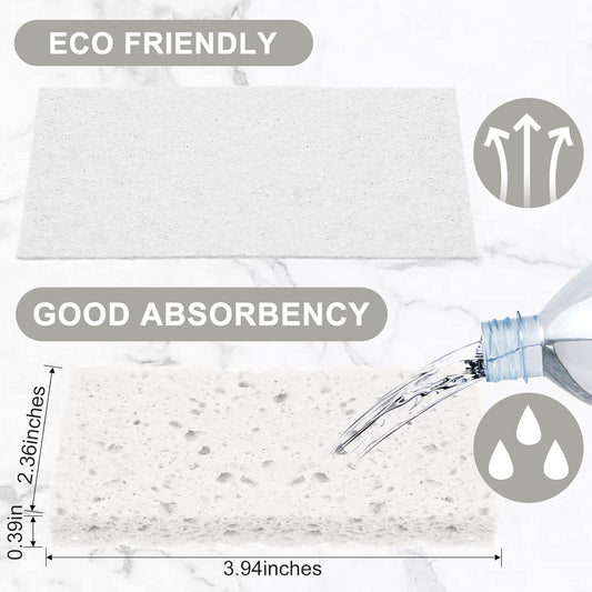 Zhengmy 100 Pieces Kitchen Sponge Bulk Natural Sponges for Dishes Compressed Wood Pulp Sponges Cleaning Sponge Without Scratching for Kitchen Bathroom, 3.9 x 2.4 x 0.12 Inch (White)