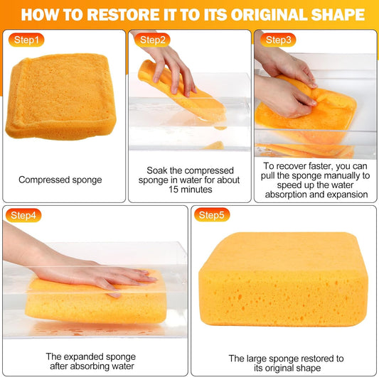 Tioncy 6 Pcs Large Sponges Bulk 7.5 x 5.5 x 1.9 Inch Grouting Car Wash Foam Cleaning and Washing Sponge Commercial Foam Large All Purpose for Cleaning Dishes Car Tile Bike (Yellow)
