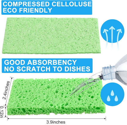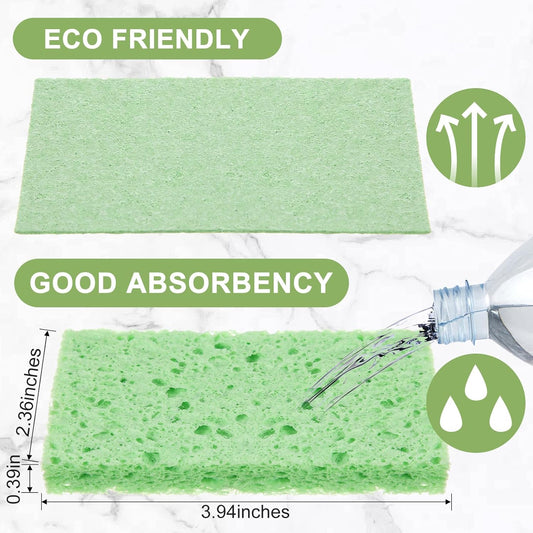 Zhengmy 100 Pieces Kitchen Sponge Bulk Natural Sponges for Dishes Compressed Wood Pulp Sponges Cleaning Sponge Without Scratching for Kitchen Bathroom, 3.9 x 2.4 x 0.12 Inch (Green)