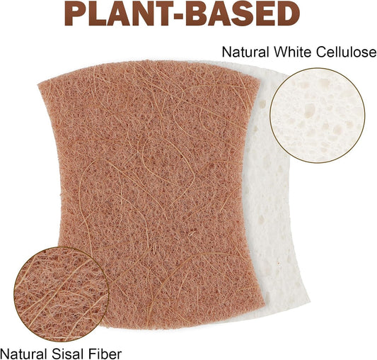 HOMERHYME Natural Dish Sponge 24 Pack, Non-Scratch Scrub Sponge, Eco Multipurpose Kitchen Sisal Fiber Cellulose Sponge, Odor-Less Dual-Sided for Dish Washing & Household Cleaning