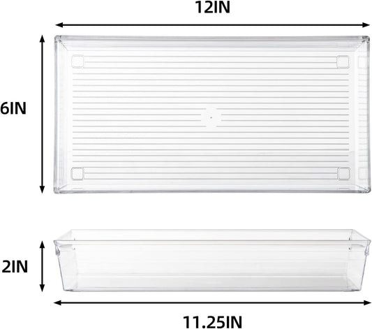 4 Pack 12"x 6" Large Size Clear Plastic Desk Drawer Organizer Tray Bathroom Office Kitchen Utensils Silverware Gadgets Dividers Desk Drawer Storage Bins Container for Dresser Cosmetic Makeup
