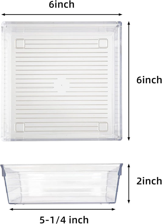 Backerysupply Clear Plastic Drawer Organizer Tray for Vanity Cabinet (6"×6"×2",Set of 8),Storage Tray for Makeup, Kitchen Utensils, Jewelries, and Gadgets…