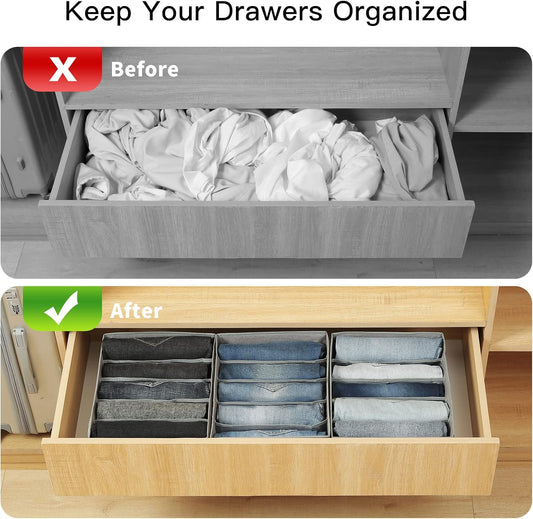 Qozary Jeans Pants Organizer for Closet, 4 Pack Drawer Organizers for Clothing, 6 Grids Wardrobe Clothes Organizer, Jean Organizer for Closet, Deep Drawer, Clothes Organizer for Shirts, Legging