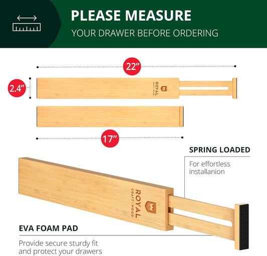 ROYAL CRAFT WOOD Adjustable Bamboo Drawer Dividers Organizers (17-21.5") with Inserts - Expandable Drawer Organization Separators for Kitchen Utensils, Clothes, 4-Pack