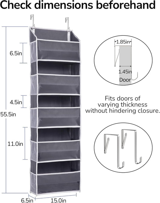 ULG Over The Door Organizer with 6 Large Pockets 12 Side Pockets, 50lbs Weight Capacity Door Hanging Organizer for Bedroom, Bathroom, Pantry, Nursery Storage, Dark Gray